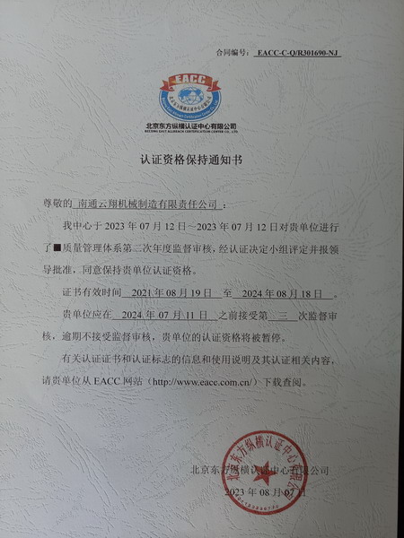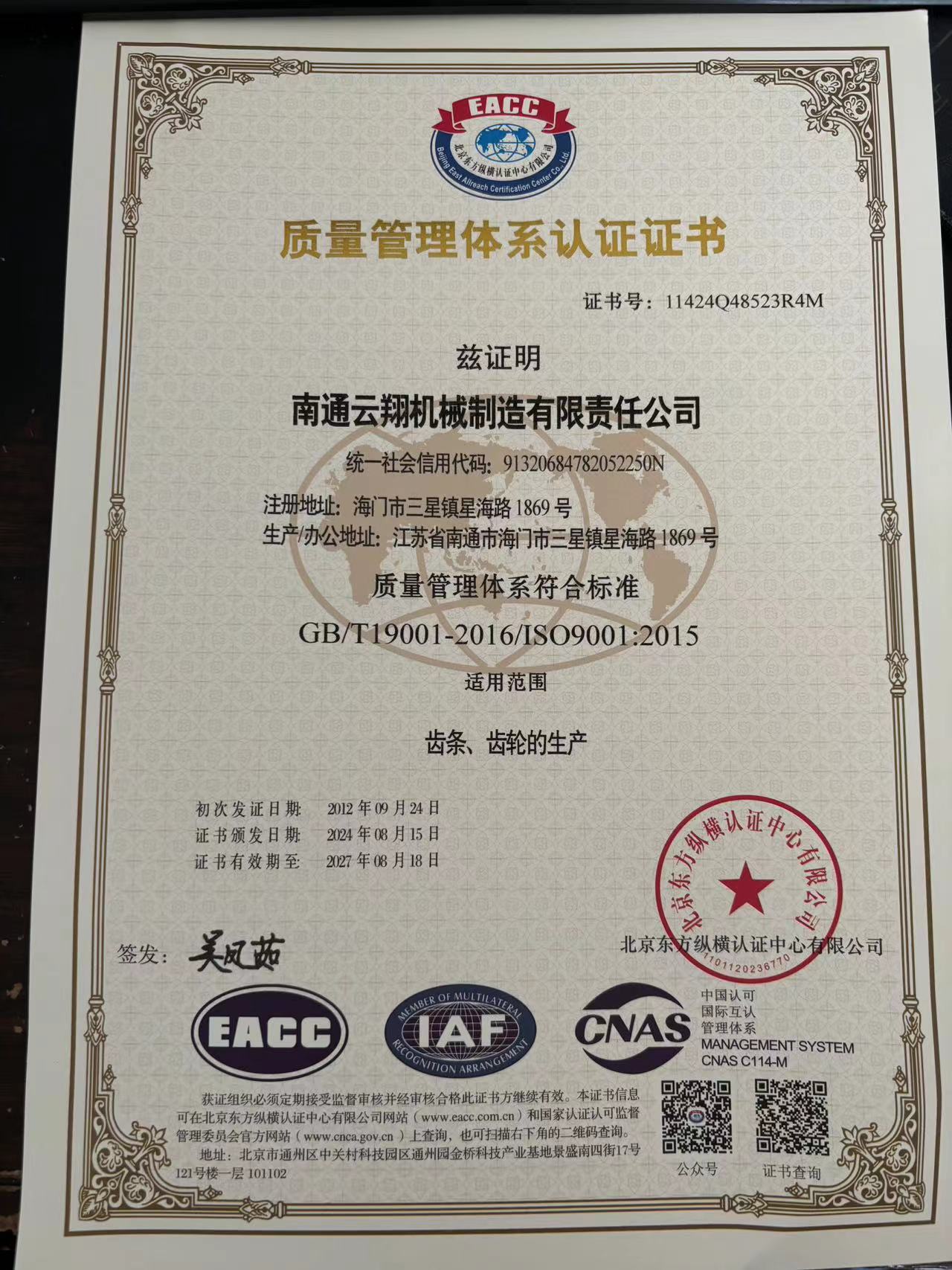 ISO9001質量管理體系證書
